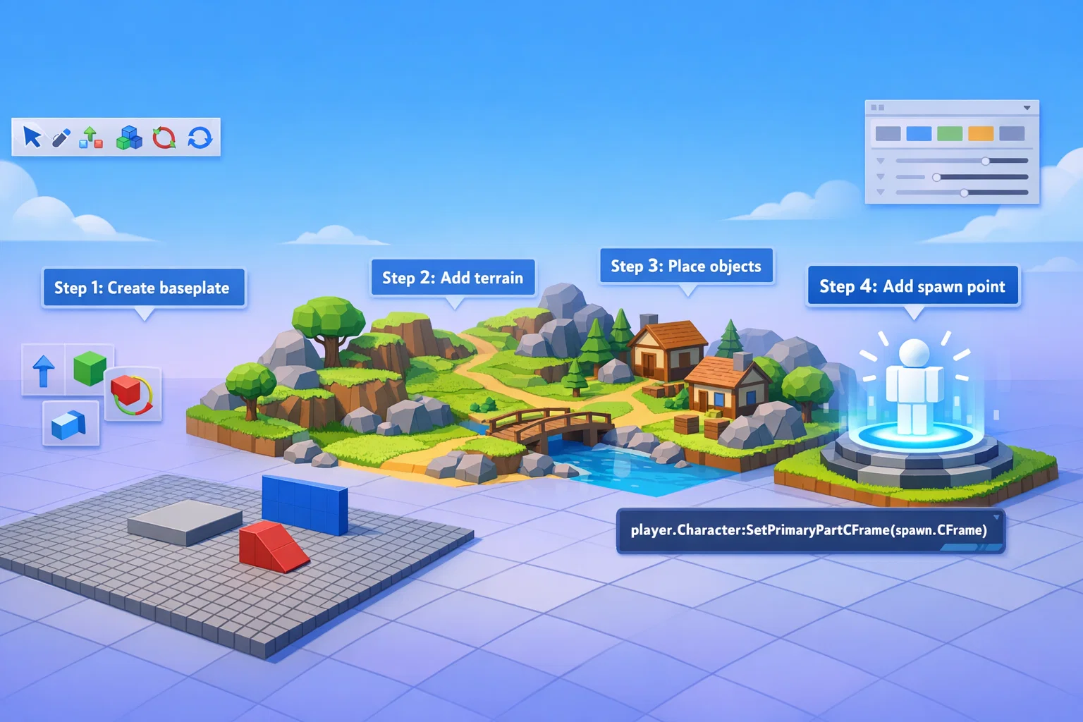 Создание карты — один из первых шагов в разработке игры в Роблокс Студио. Именно карта формирует игровой мир, по которому будут перемещаться игроки, выполнять задания и взаимодействовать с объектами.
