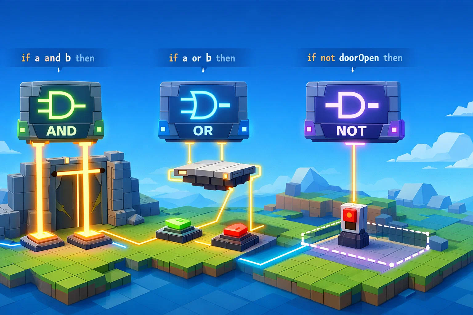 Операторы сравнения и логические операторы and, or, not в Роблокс Студио помогают игре принимать решения.